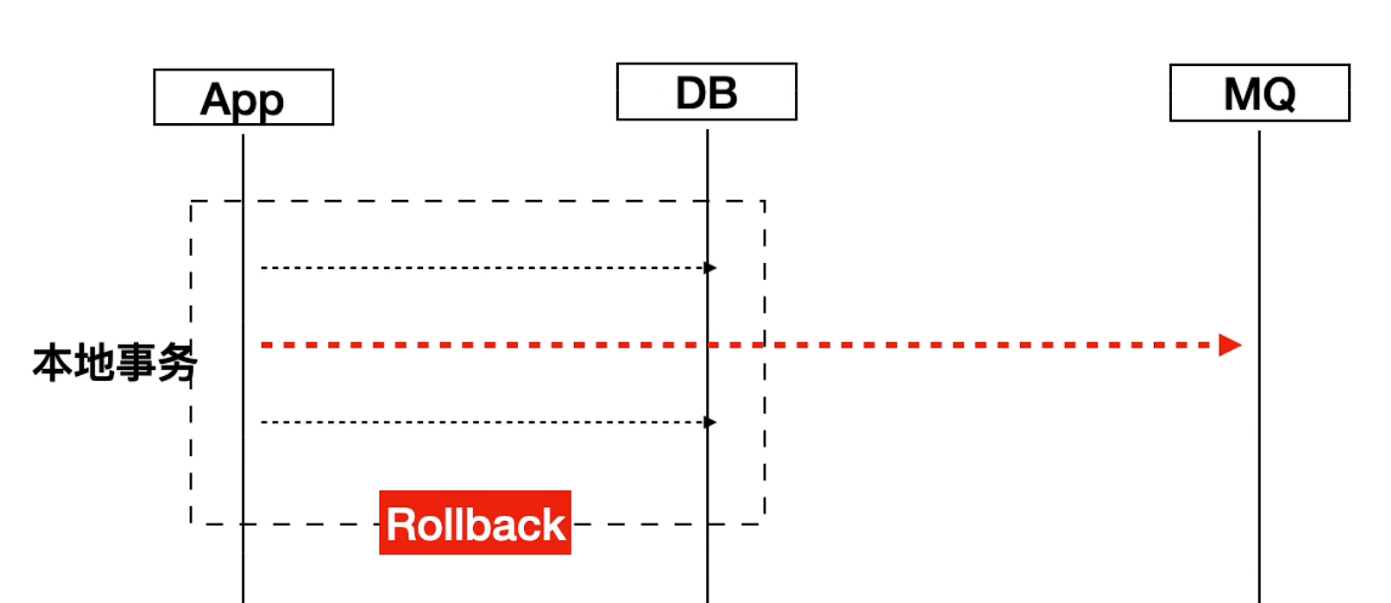 比如说本地事务回滚,但是中间消息已经发送出去了,消息是没有办法撤回的,发送消息和本地事务就没有保证原子性。